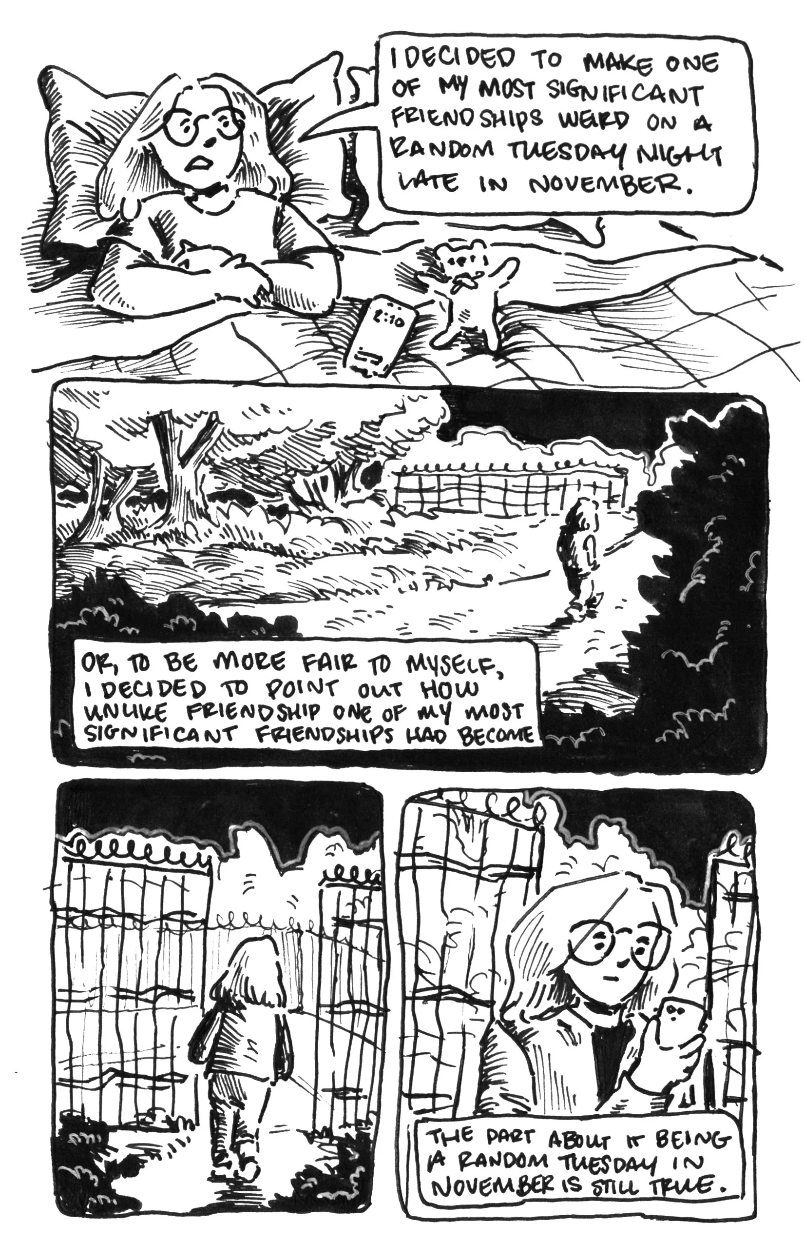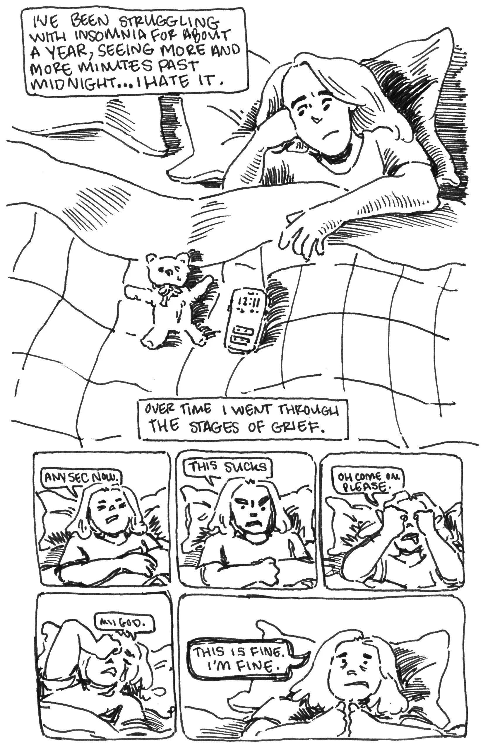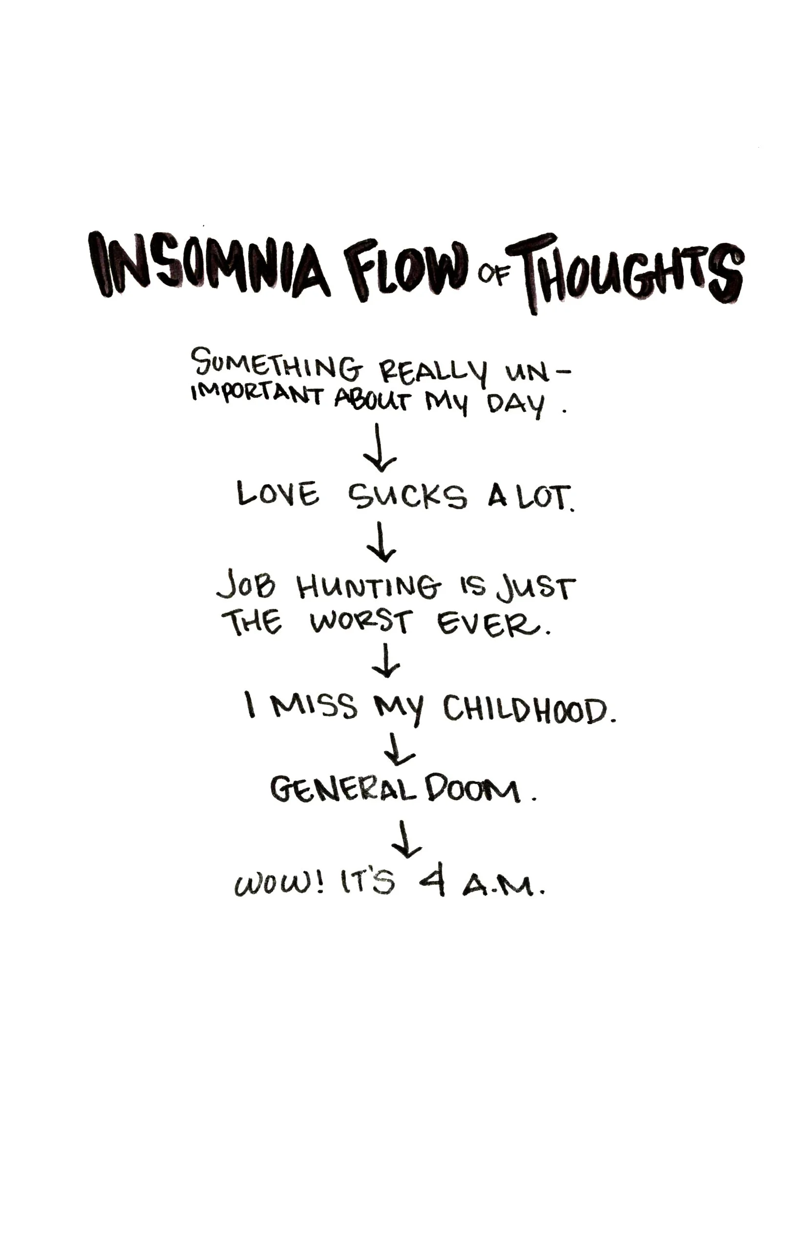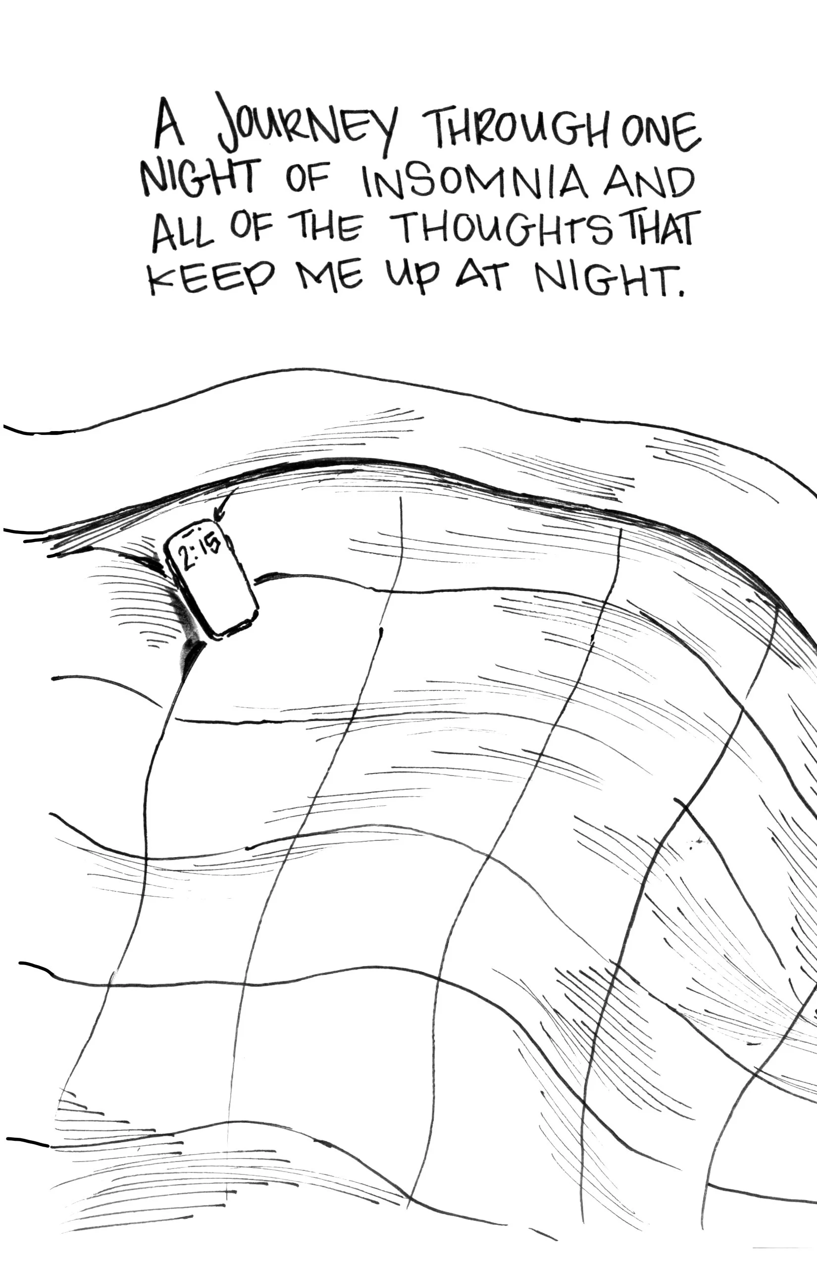 “Thoughts That Keep Me Up At Night" is an 80-page comic chronicling a single night of insomnia. The narrative follows the spiral of thoughts that oc.cur only in the smallest hours of the morning. Exploring all of the most embarrassing things that have ever happened to me and the terror that comes with becoming a new adult.