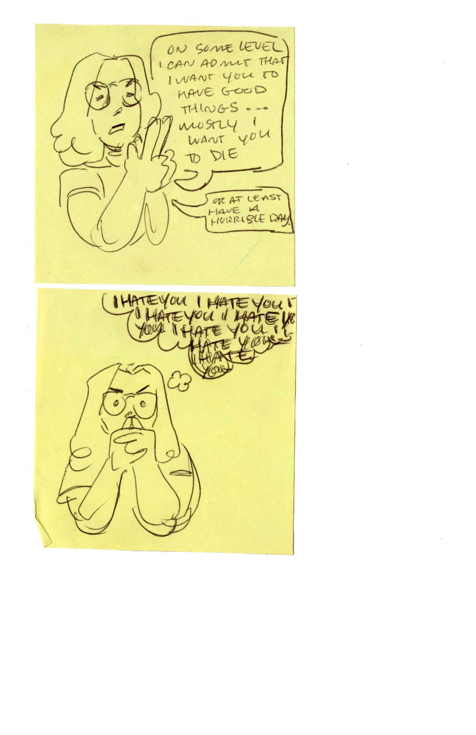 Self-published comic collecting a series of sketches made in a sketchbook over a year. 16 pages total, complete with post-it notes, color trials, random musings, and maybe more information than anyone really wanted.