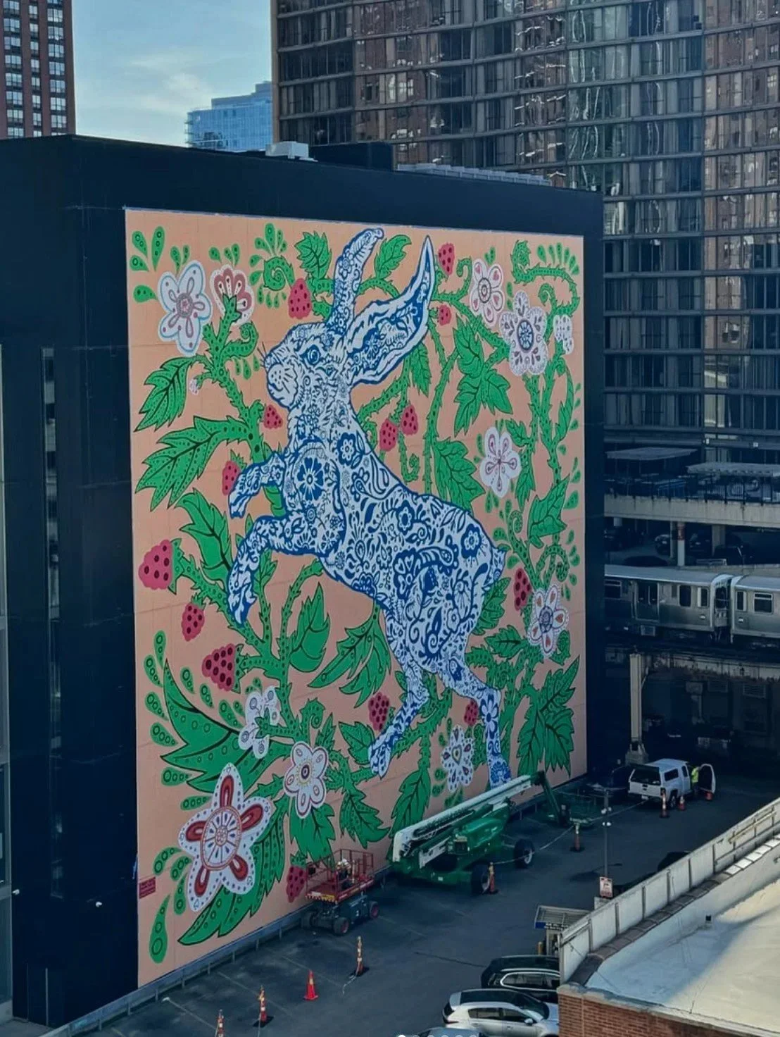 Assisted artist Cheri Lee Charlton in executing the 5-story mural for Columbia College Chicago. The bunny serves as a nod to student curiosity.